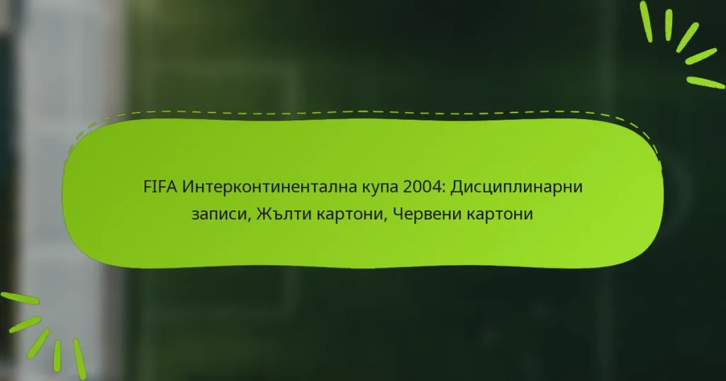 ФИФА Интерконтиненталната купа 2004 беше белязана от висок брой дисциплинарни действия, като няколко жълти и червени картона повлияха на наличността на играчите и хода на мачовете. Издаването на жълти картони подчерта конкурентната интензивност на турнира, докато двата червени картона, получени по време на състезанието, оказаха значително влияние върху динамиката на игрите и общата нарратива на събитието. Key sections in the article: Toggle Какви са дисциплинарните записи за ФИФА Интерконтиненталната купа 2004? Обзор на дисциплинарните действия по време на турнира Значителни…